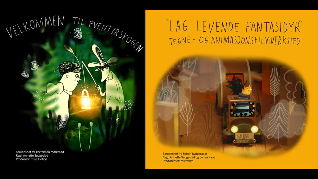 Dette er et lekent og eksperimenterende verksted, med fokus på å utnytte sitt eget uttrykk og grenseløse fantasi. Her får barna jobbe med ulike tegneteknikker for å skape sitt eget fantasidyr og så lage sin egen animasjonsfilm med dyret. Etter å ha lært å bruke fantasi og teknikker i sin egen film, lærer de også hvordan de kan fortsette med dette hjemme. Kursholder Annette viser også klipp fra egne animasjonsfilmer hun jobber med.